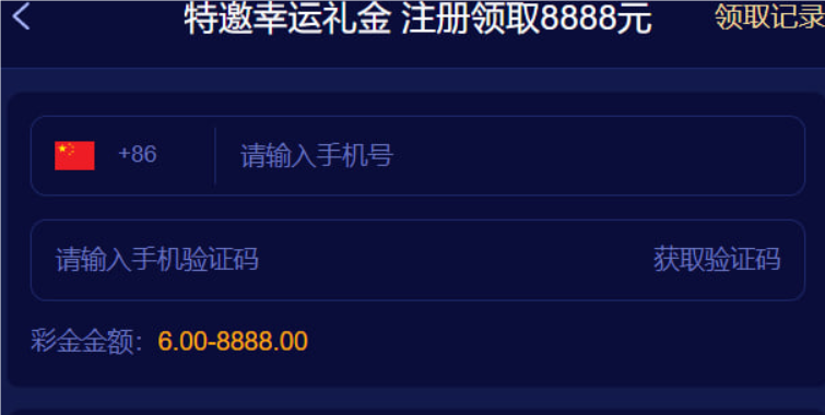 活动详情:短信特邀碰瓷,注册进入活动页面填写手机号码领取,没有短信的也试试,有可能有短信,出款自测!