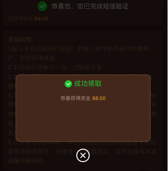 活动详情:电话特邀彩金88